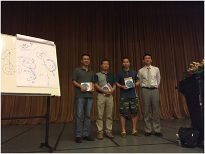 幸運(yùn)學(xué)員手持優(yōu)制咨詢贈送的精益運(yùn)營管理書籍與姜老師合影