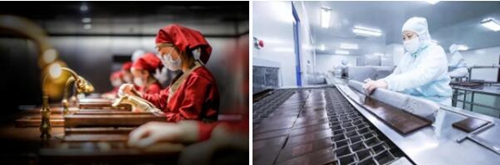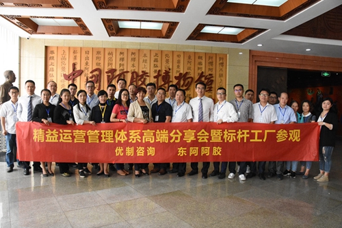 東阿阿膠全封閉、透明化的工廠參觀給與會嘉賓留下深刻印象!卓越現場、熟練操作傳承傳統制作工藝的作業員、高水準的現場管理,看傳統的阿膠文化如何與現代先進的管理手段融為一體!嘉賓們紛紛拍照留念!