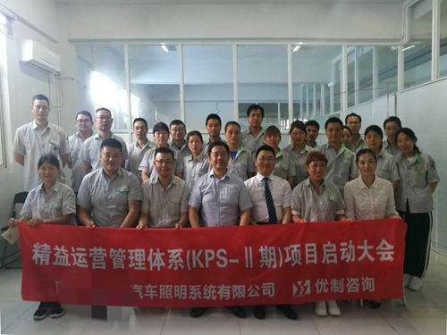 2018年7月12日,江蘇某照明系統(tǒng)有限公司《精益運(yùn)營(yíng)管理體系KPS-II期》項(xiàng)目大會(huì)如期舉行,公司總經(jīng)理卜總、副總經(jīng)理唐總、制造部陳部長(zhǎng)、人力資源黃部長(zhǎng),優(yōu)制咨詢總監(jiān)楊老師,項(xiàng)目組核心成員共計(jì)30余人出席了啟動(dòng)會(huì)。