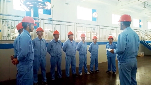 在提煉工程一部車間里,我們首先看到了活力十足的班組會,激情昂揚的問好聲能喚醒一整天的好心情~