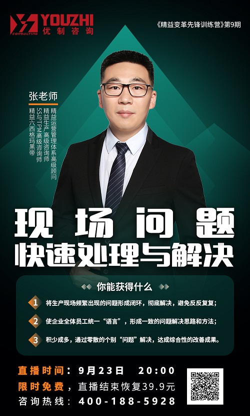 9月23日20:00-20:45,優制咨詢張老師教您如何快速解決現場問題,避免反復,培養解決問題的思路與方法。