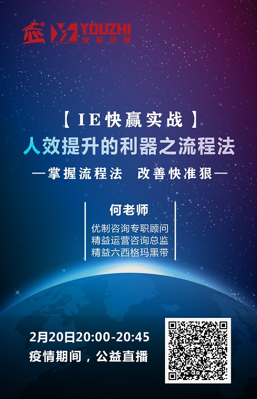 優制咨詢專職顧問何老師憑借自己多年的精益咨詢項目經驗,結合實戰案例,帶你了解人效提升的核心利器“流程法”,實現快準狠的改善!