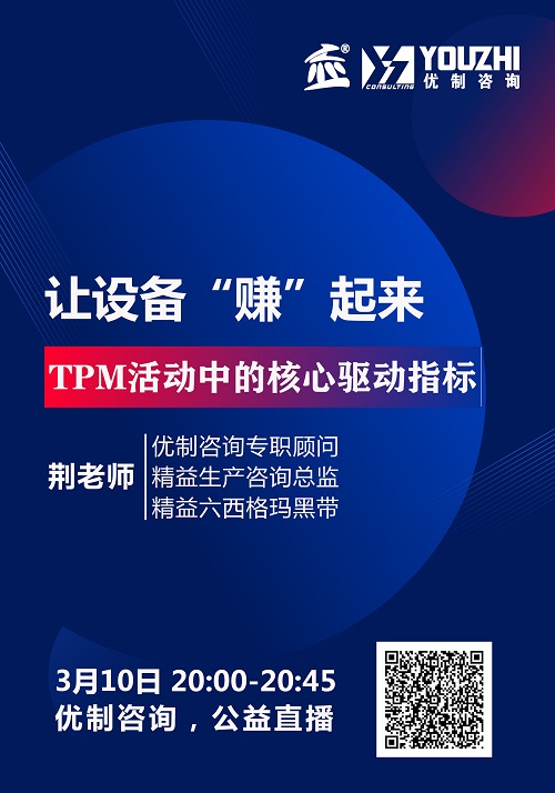 在當今制造業設備取代人的發展趨勢下,設備管理在生產中的重要性越來越高。越來越多的企業開始推行TPM活動,以期提高設備的利用率。TPM活動的根本目的是什么?如何量化、準確地衡量TPM活動和設備管理工作的效果?在本期課程中,優制咨詢的專職顧問荊老師將帶領大家學習設備管理的核心指標。