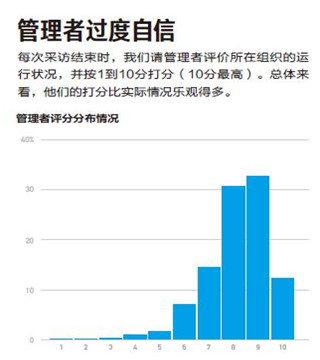 我們的研究顯示,相當多管理者無法客觀判斷所在企業運行狀況的好壞。(這種認知偏差普遍存在,例如在一項研究中,70%的學生、80%的駕駛員、90%的大學教師都認為自己“能力高于平均水平”。)