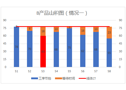 線體CT(Cycle Time)=瓶頸工序節(jié)拍=80S;