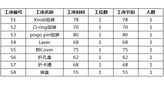 S3工序通過增加組裝治具,優(yōu)化作業(yè)方法,時間從80S降低至60S,其他工序數(shù)據(jù)不變。